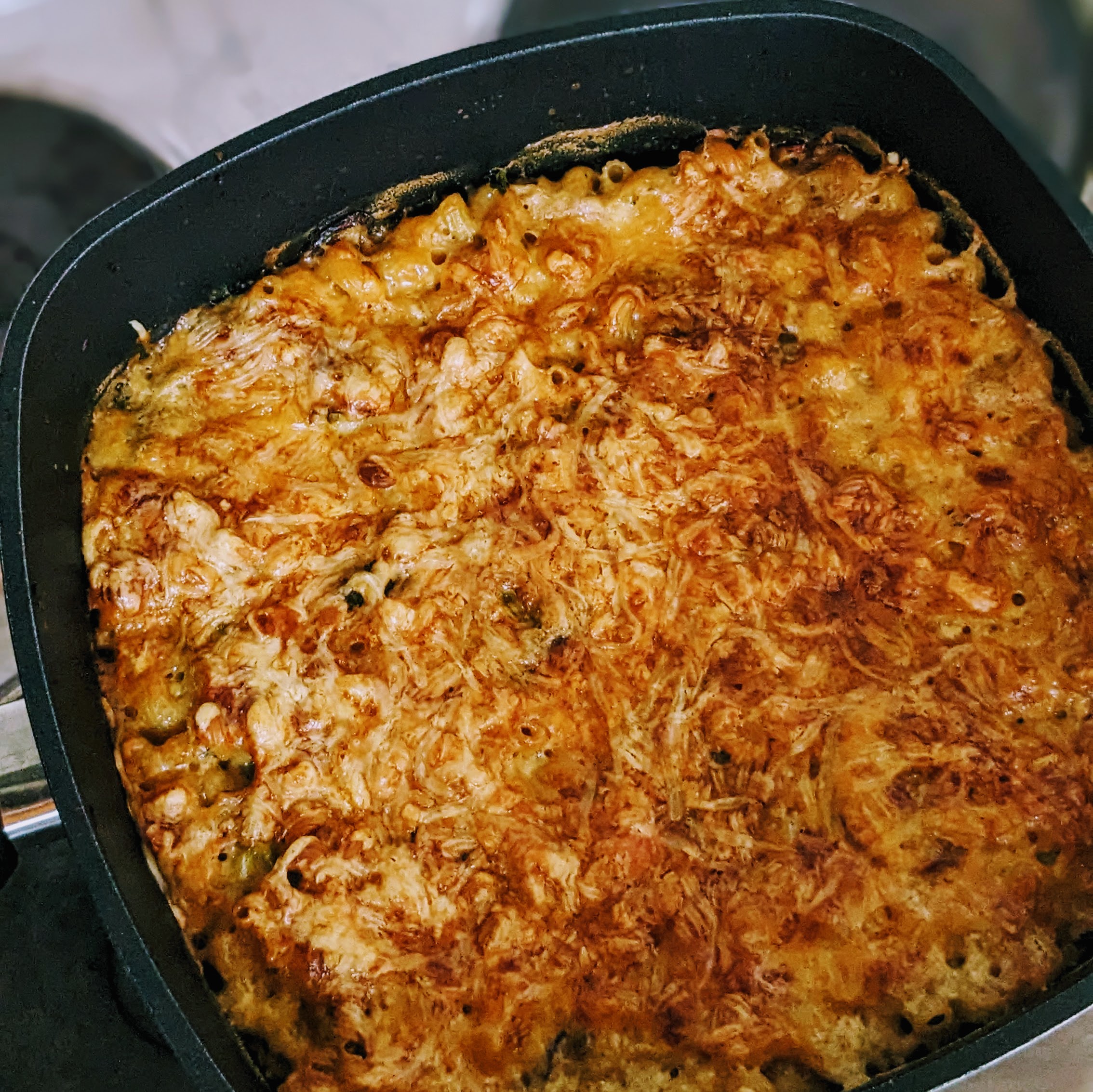 Herzhafter Käse, knackiges Gemüse und verdrehte Hörnchen-Nudeln verschmelzen zu einem goldbraunen Auflauf der wirklich jedem schmeckt.